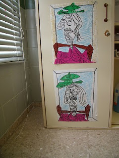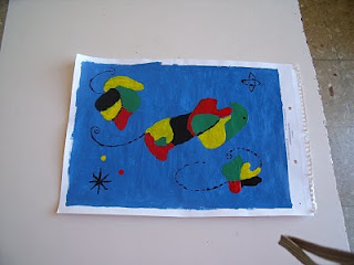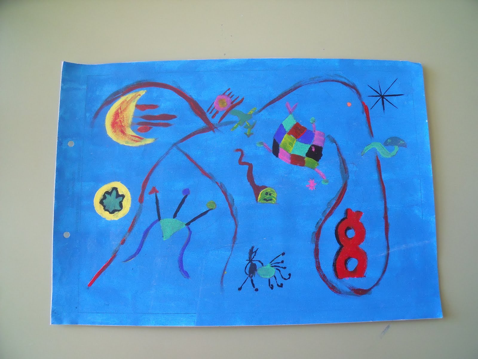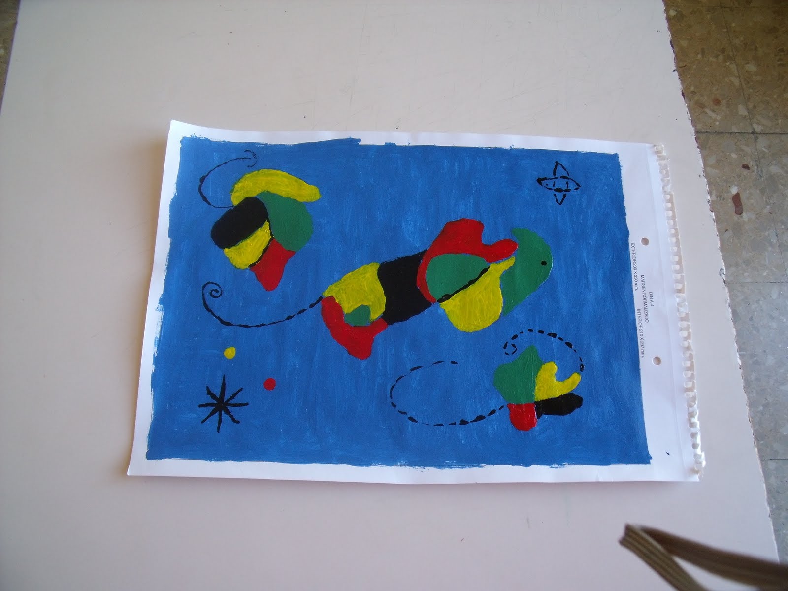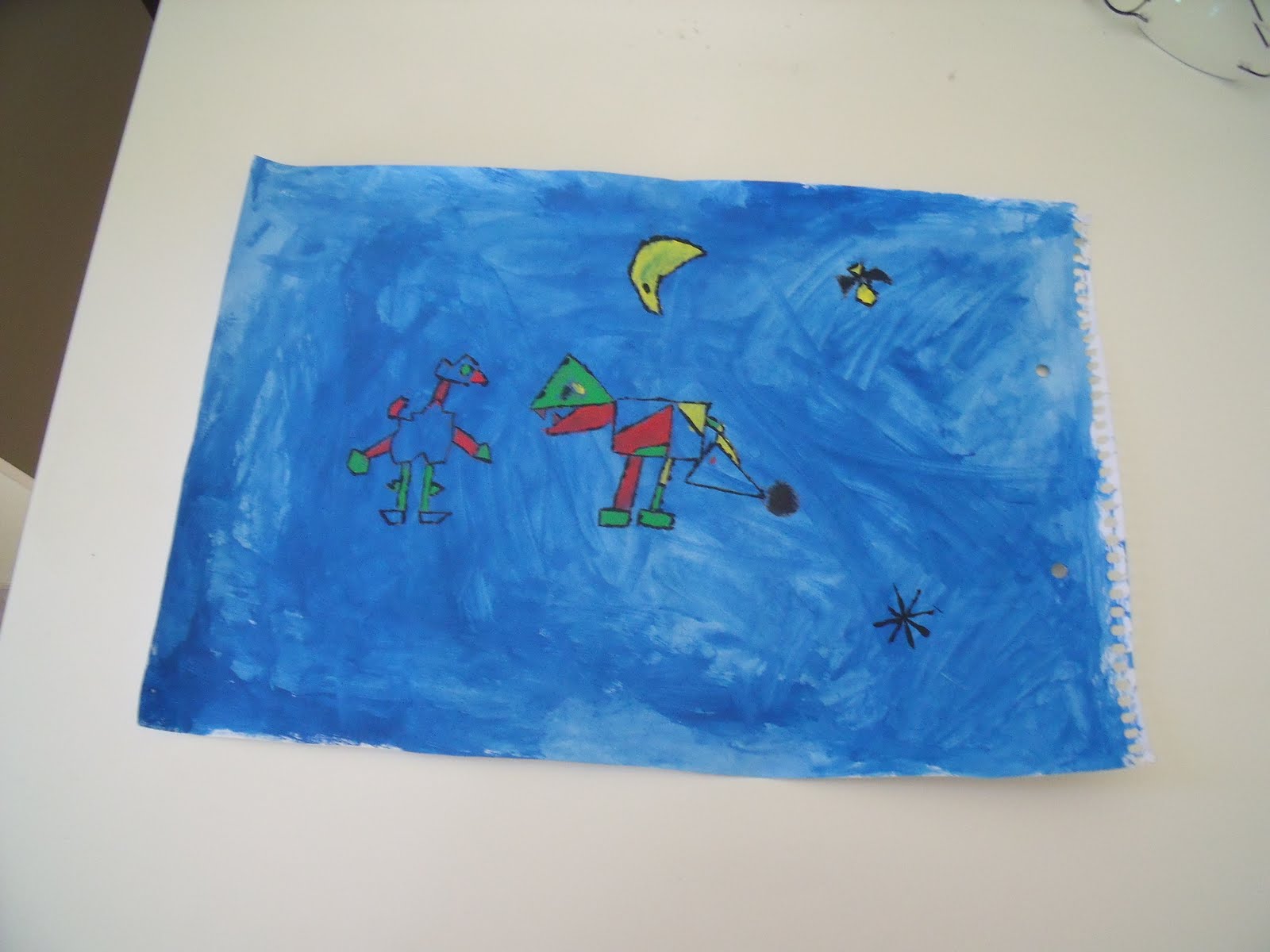 Aquesta carpeta ha estat feta a partir de cartolina groga i una veta negra per poder lligar-la i posar els treballs de Miró, com sempre, he utilitzat els colors naturals de Miró. he dibuixat un gat un fantasma i una vaca.